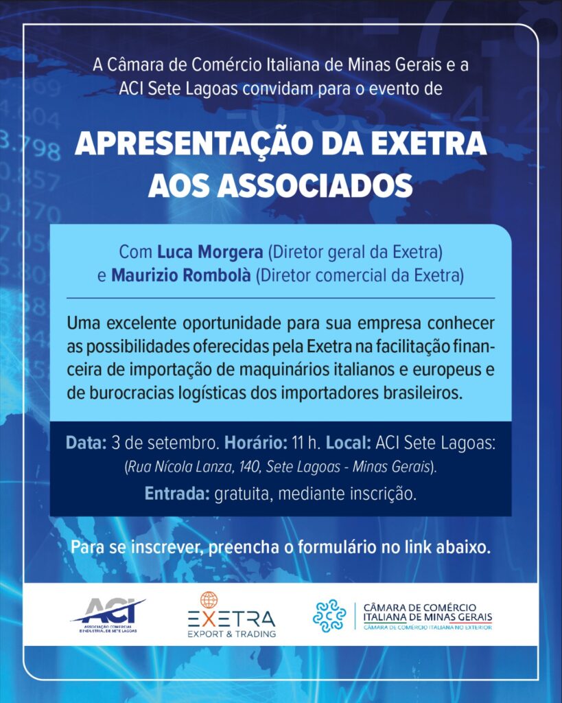 Ao associar-se à Câmara Ítalo-Brasileira de Comércio, Indústria e Agricultura de Minas Gerais, a sua empresa passa a fazer parte de um próspero ambiente comercial, focado no desenvolvimento dos mercados brasileiro e italiano, no fomento de negócios e na promoção do intercâmbio comercial em âmbito global.